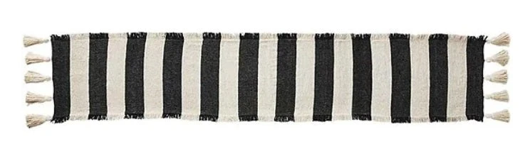 90″ Ponchaa Cotton Table Runner, Black Stripe By Mud Pie