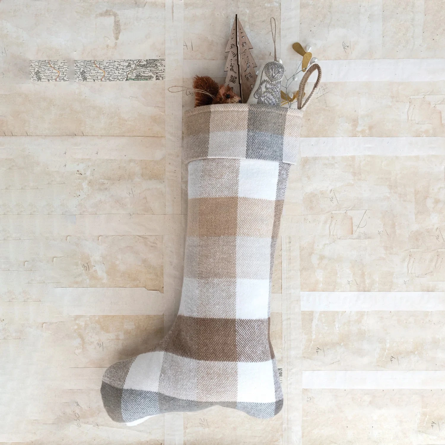 Brushed Plaid Cotton Flannel Stocking, Multi Color Beige & Taupe