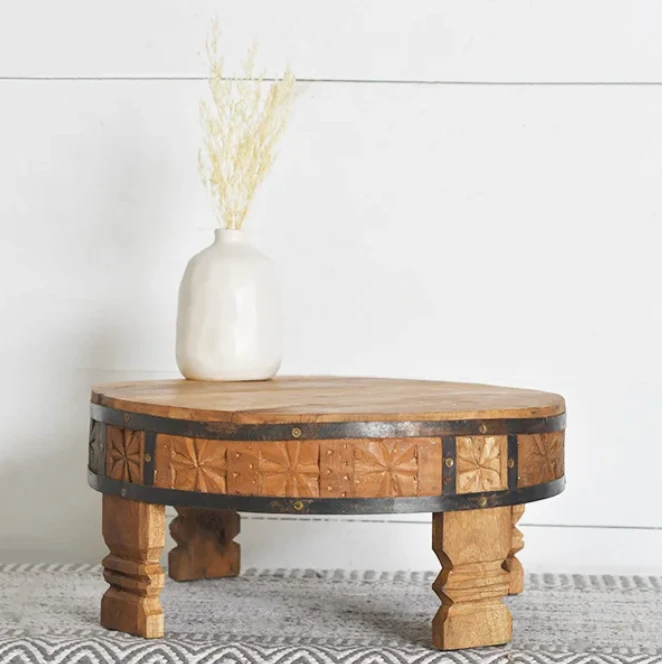 Carved Wood Pedestal Stool Riser, 5.9″