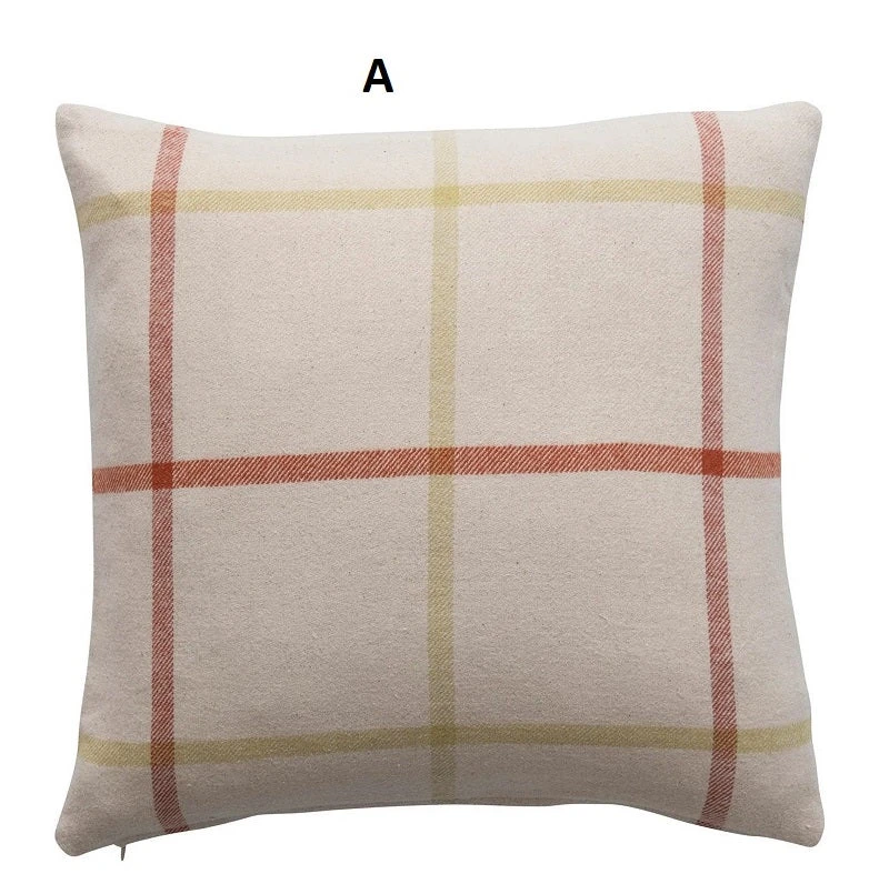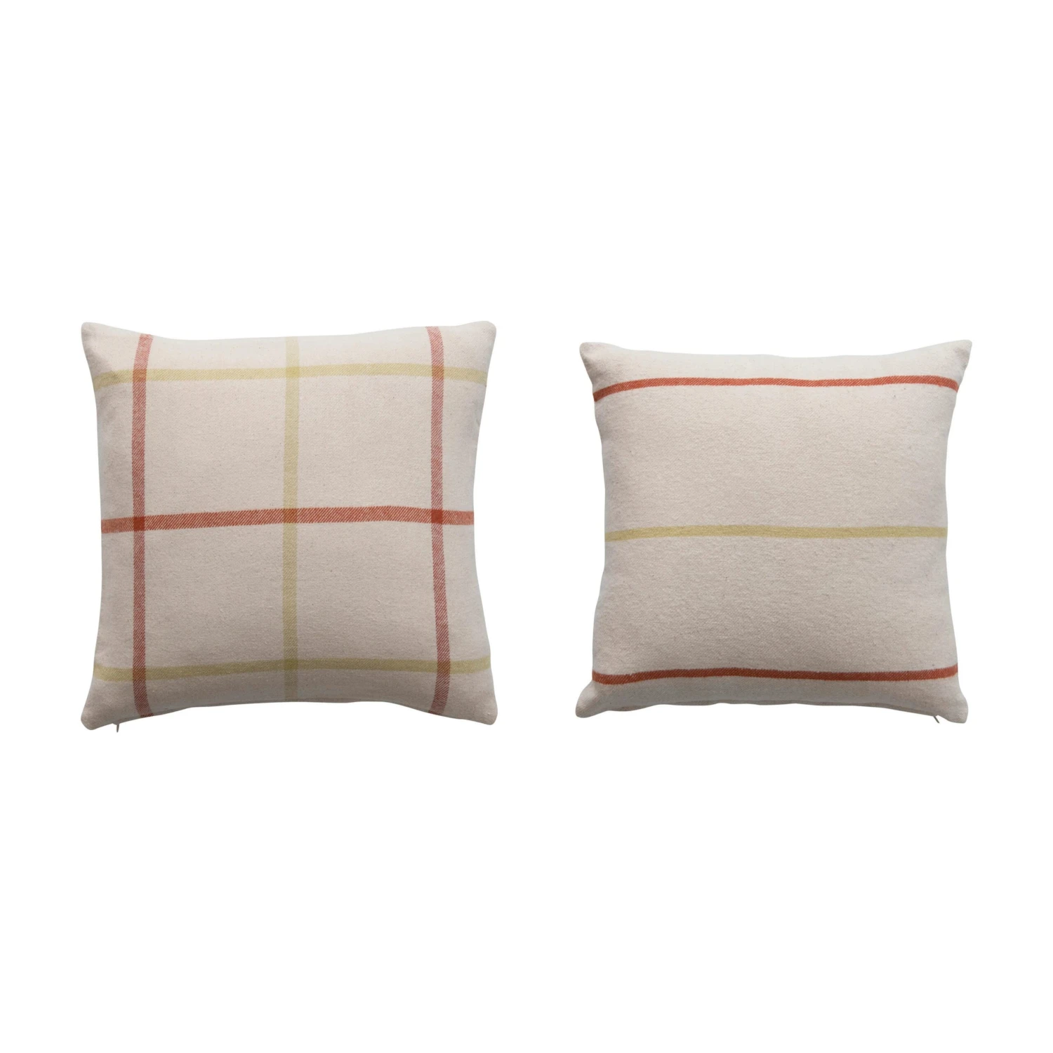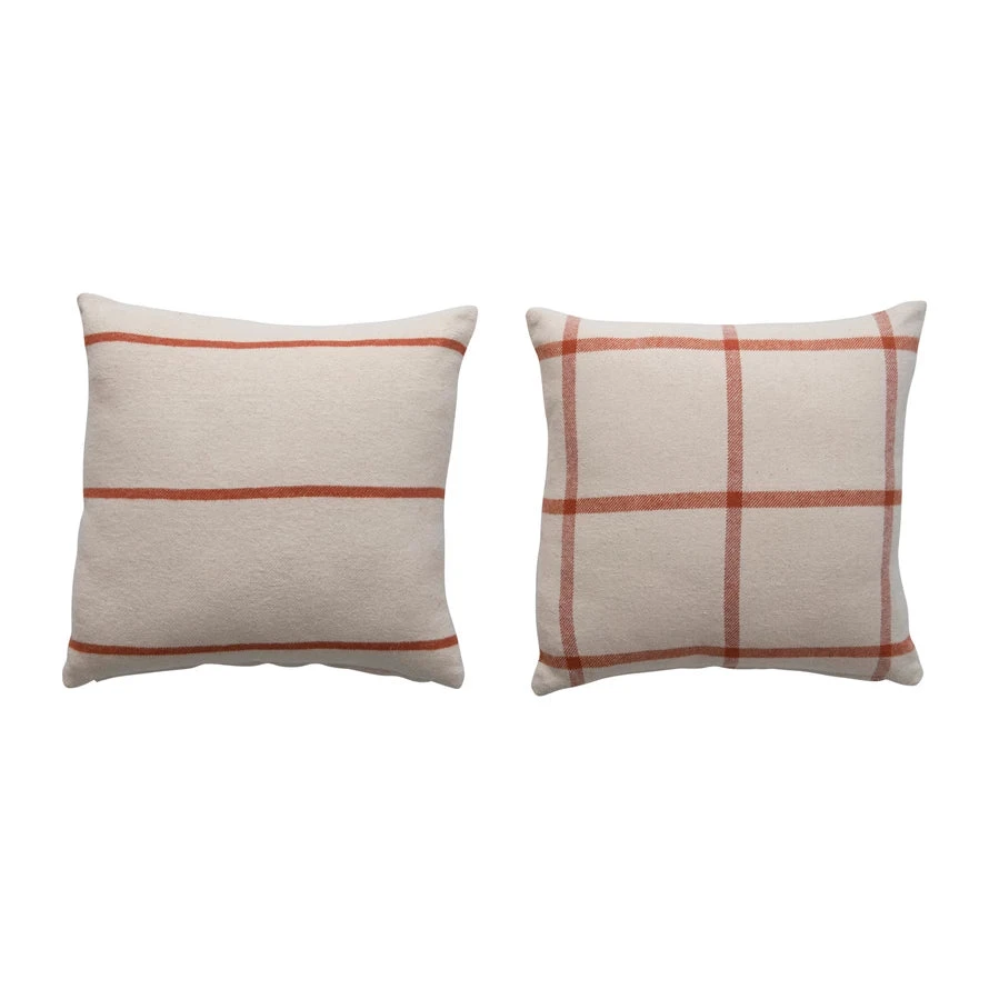 Cotton Flannel Pillow With Pattern, Cream & Rust, 2 Style Options