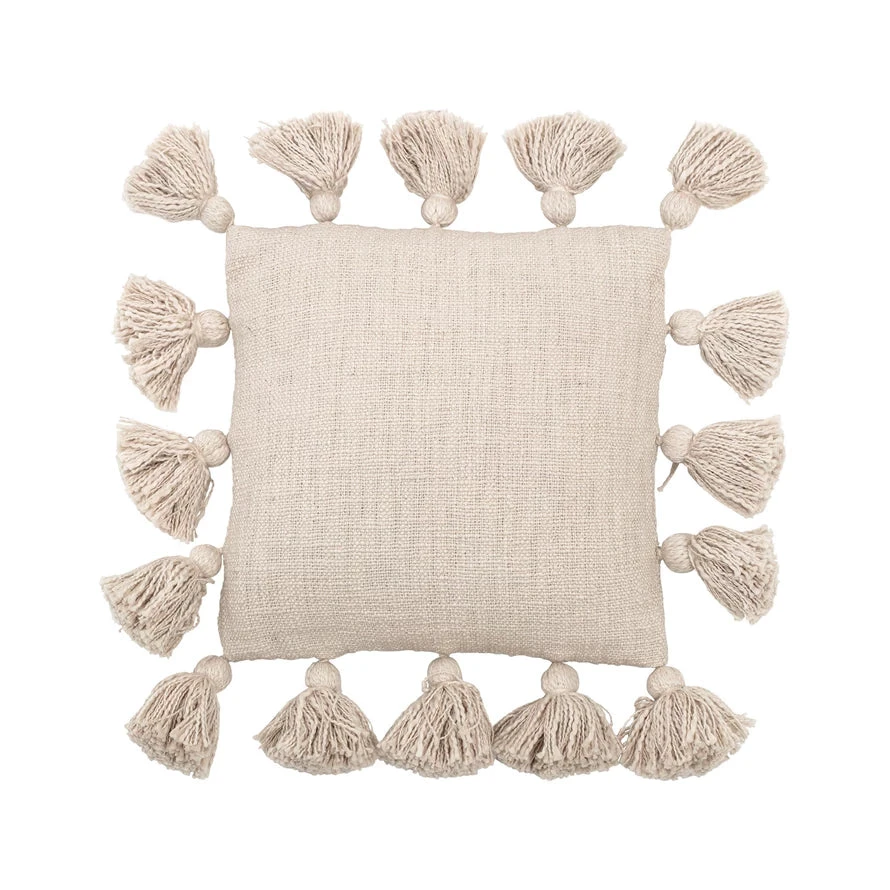 Cotton Slub Pillow With Tassels, Cream