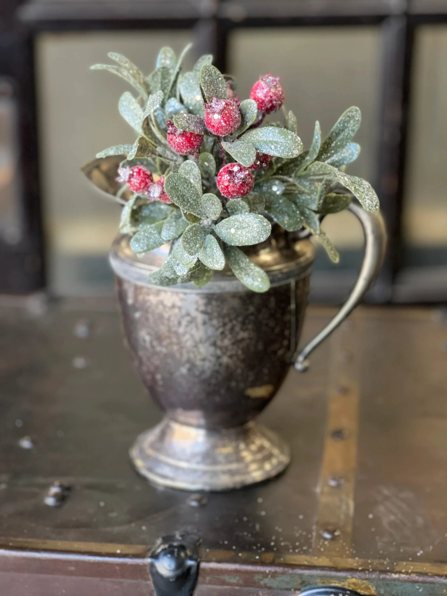 Rounded leaves in a beautiful shade of green make a gorgeous background for multi-sized red berries. Ultra fine snow and glitter add an extra dash of pizazz to this already beautiful collection.