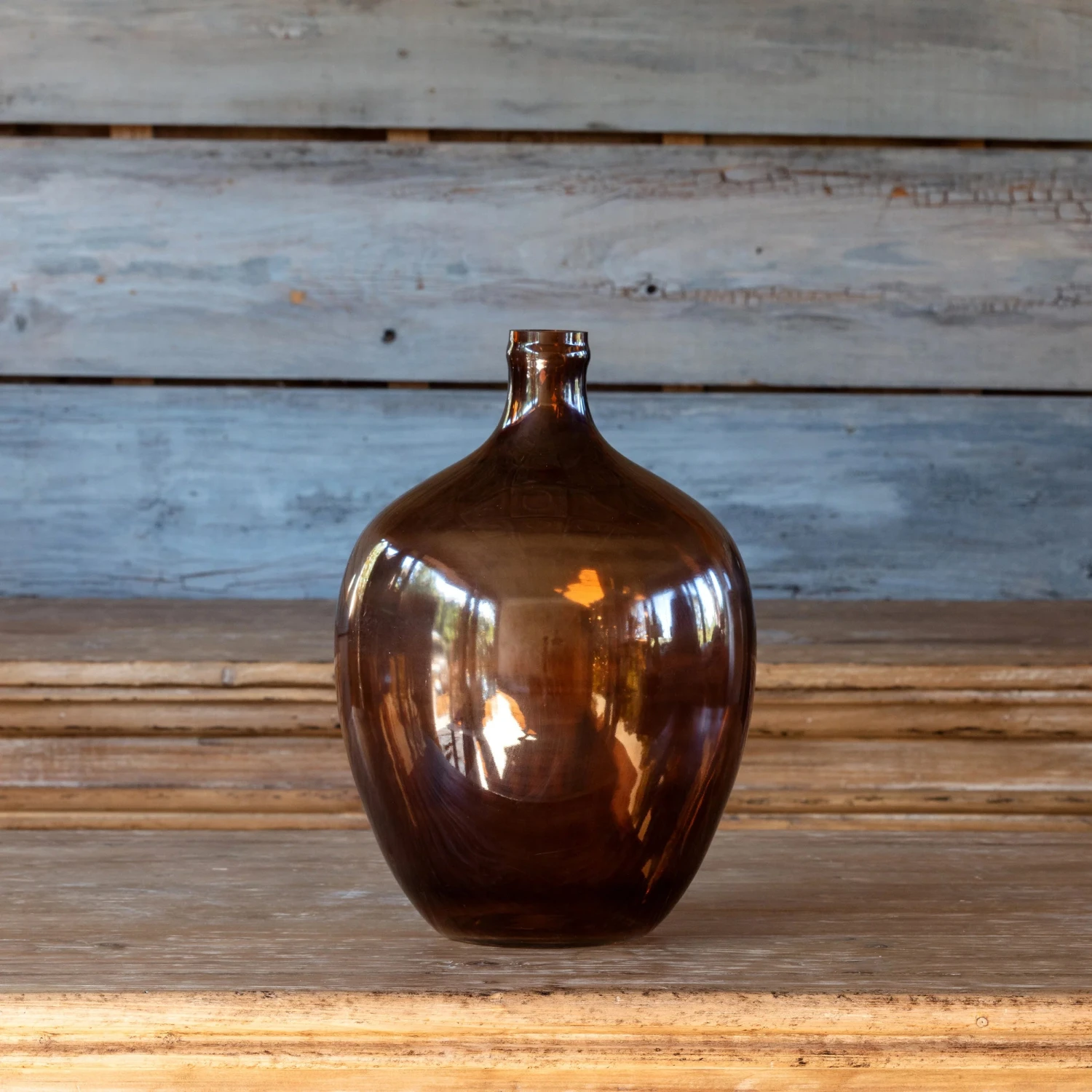 The shape and size of the Demi John bottle in Amber is a unique piece that it can stand alone or be grouped with other shapes and sizes of bottles in Amber.