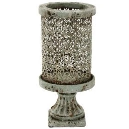 Distressed Hurricane Candle Holder, Seafoam & Rust