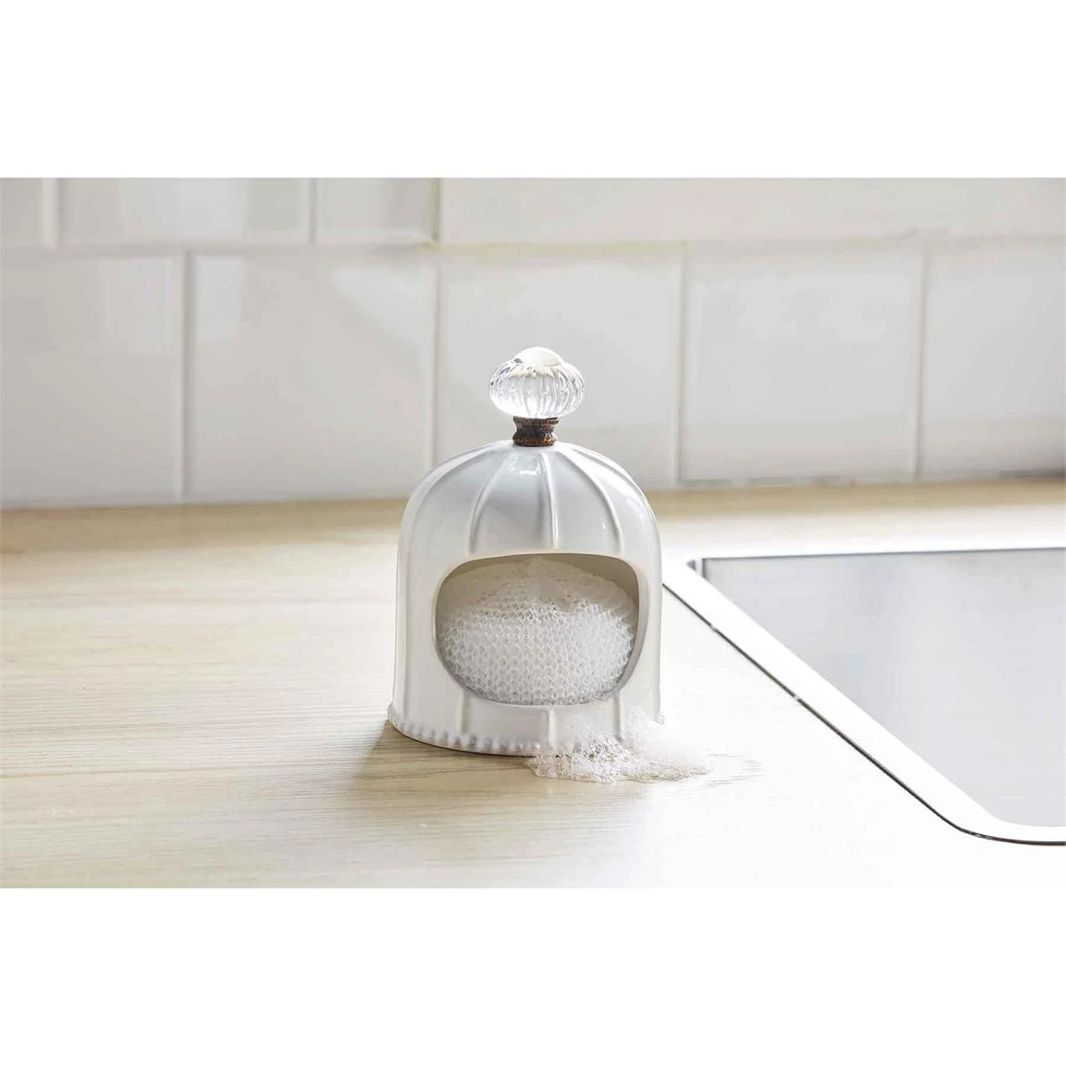 2-piece set. Beaded ceramic sponge caddy features glass door knob finial. Comes with sponge.