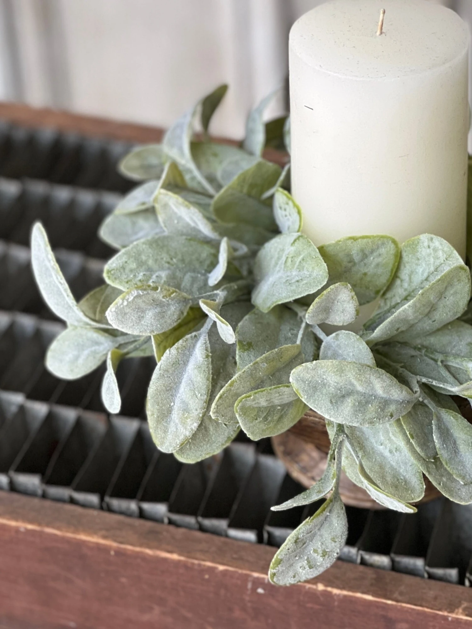 Elongated flocked leaves in a subtle shade of green gives a serene feeling to this versatile collection.