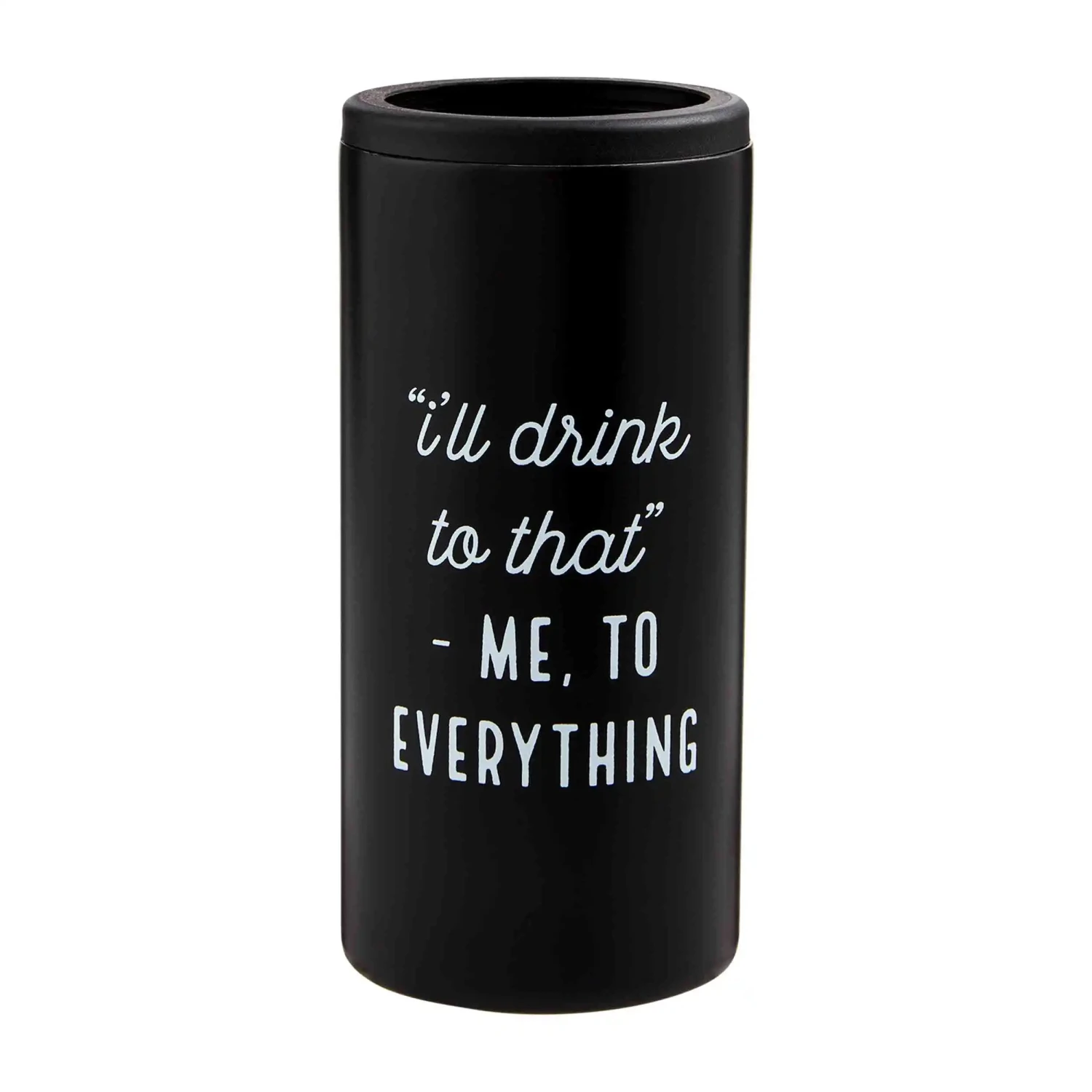 You had me at day drinking with this Black Seltzer Can cooler. The insulated stainless steel can cooler fits a standard size seltzer can perfectly. The can cooler features the sentiment “I’ll drink to that – Me to Everything” on the front of it. These make the perfect party accessory.