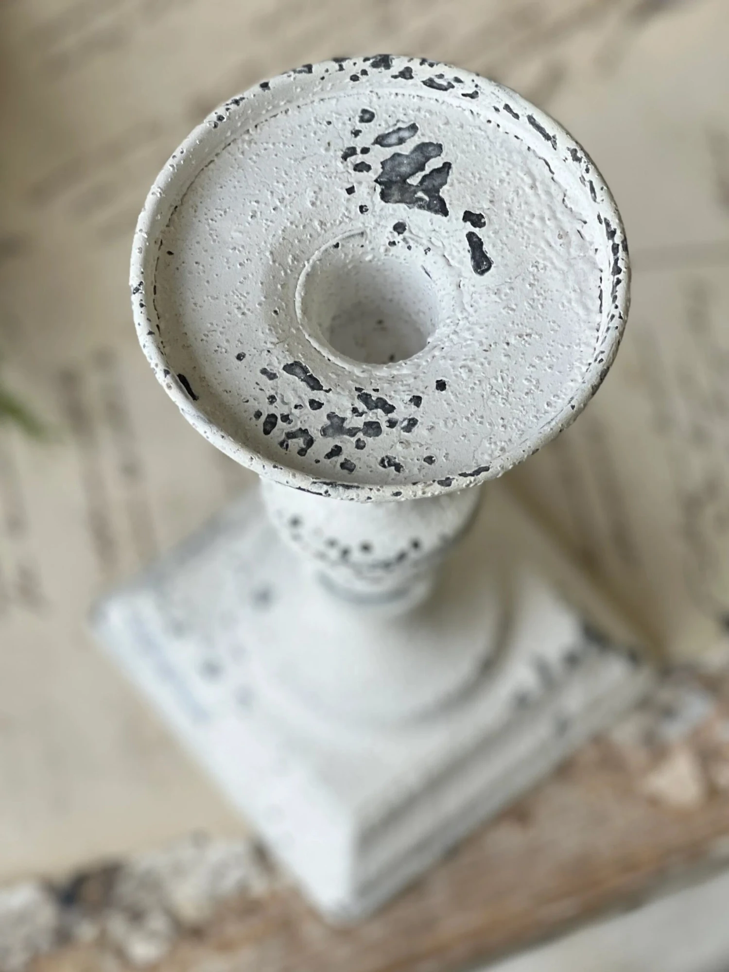 Meet ournewest and most versatile holders! The Midway Holders not only have a lovely silhouette, but can be used as a taper holder, a pillar holder, or to display half spheres. They also feature a perfectly distressed finish.