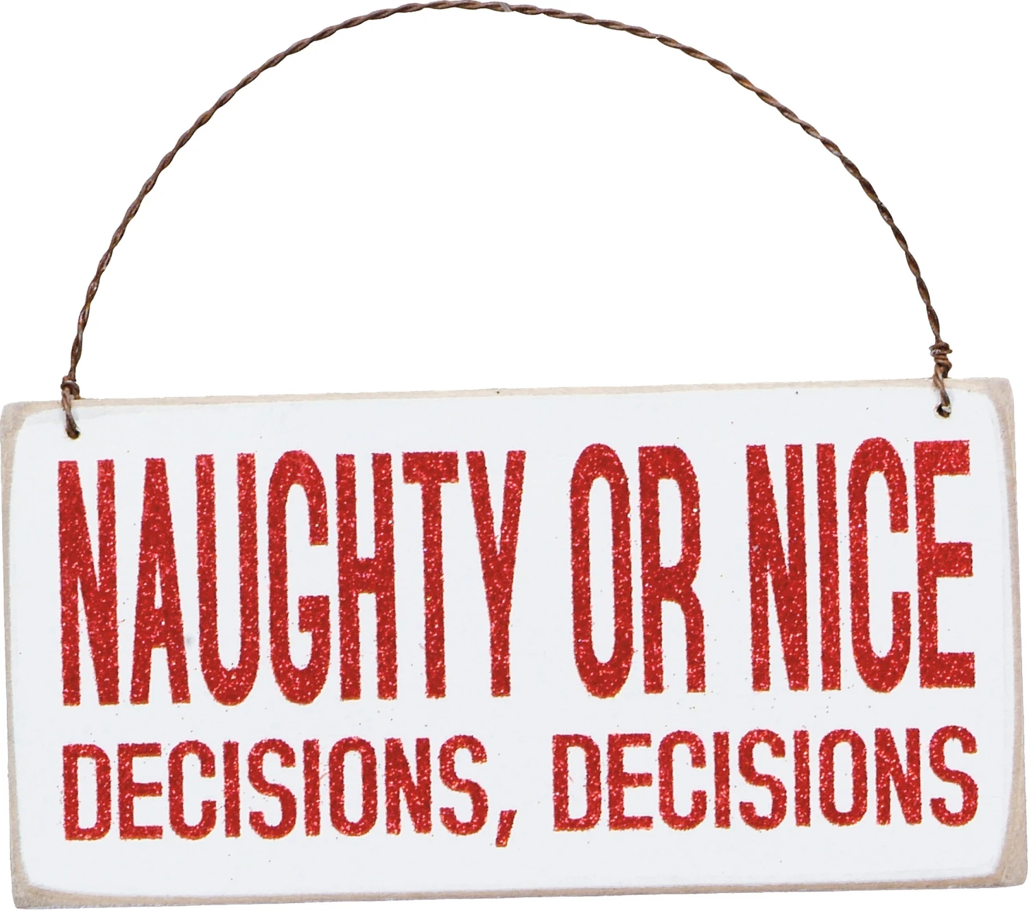“Naughty Or Nice – Decisions, Decisions” Sign Ornament