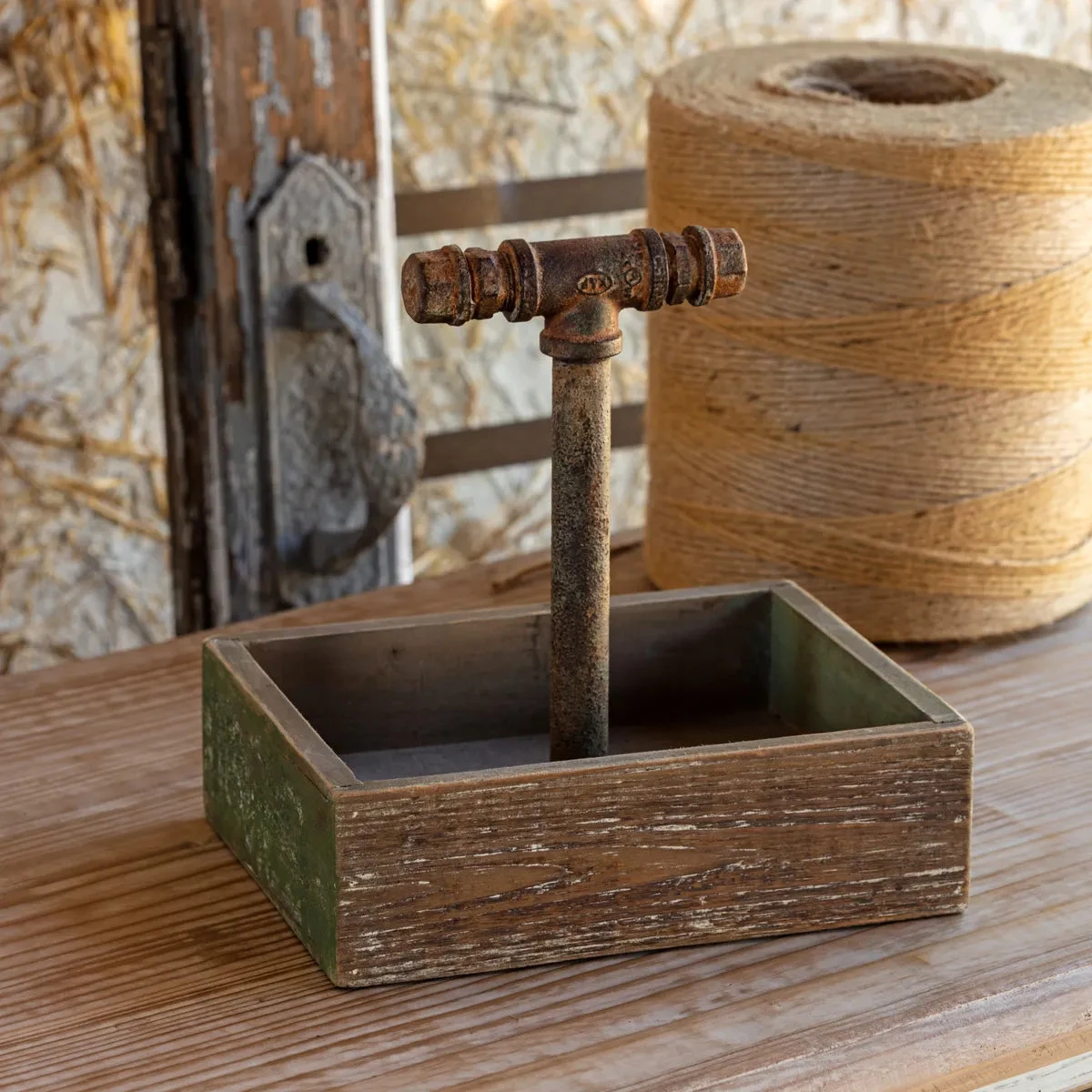Painted Wood Folk Art Caddy With Pipe Handle By Porch View Home