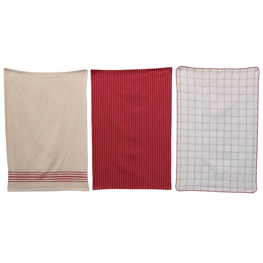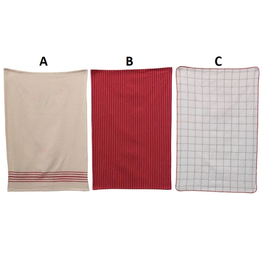 Woven Cotton Christmas Kitchen Towel, Red, 3 Style Options