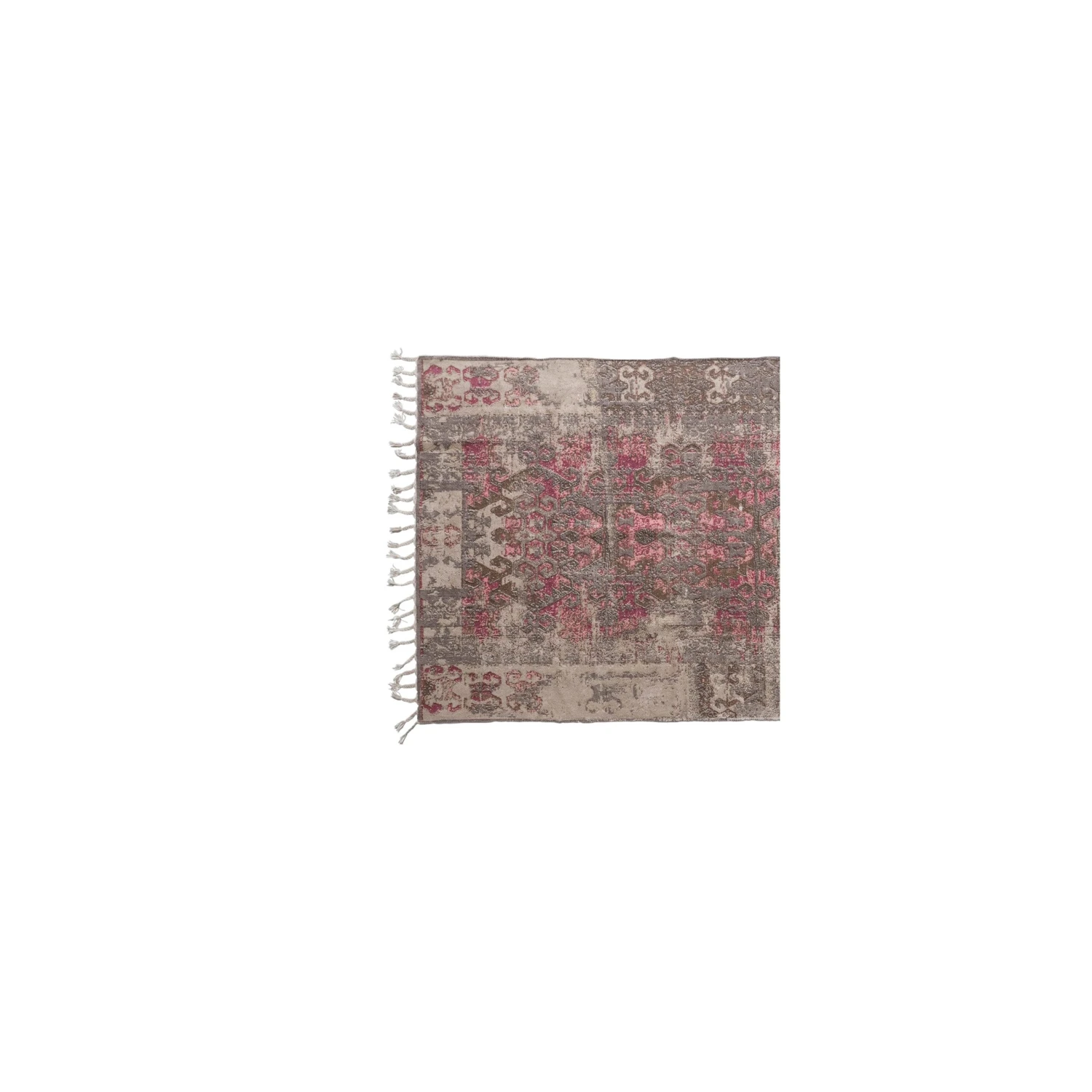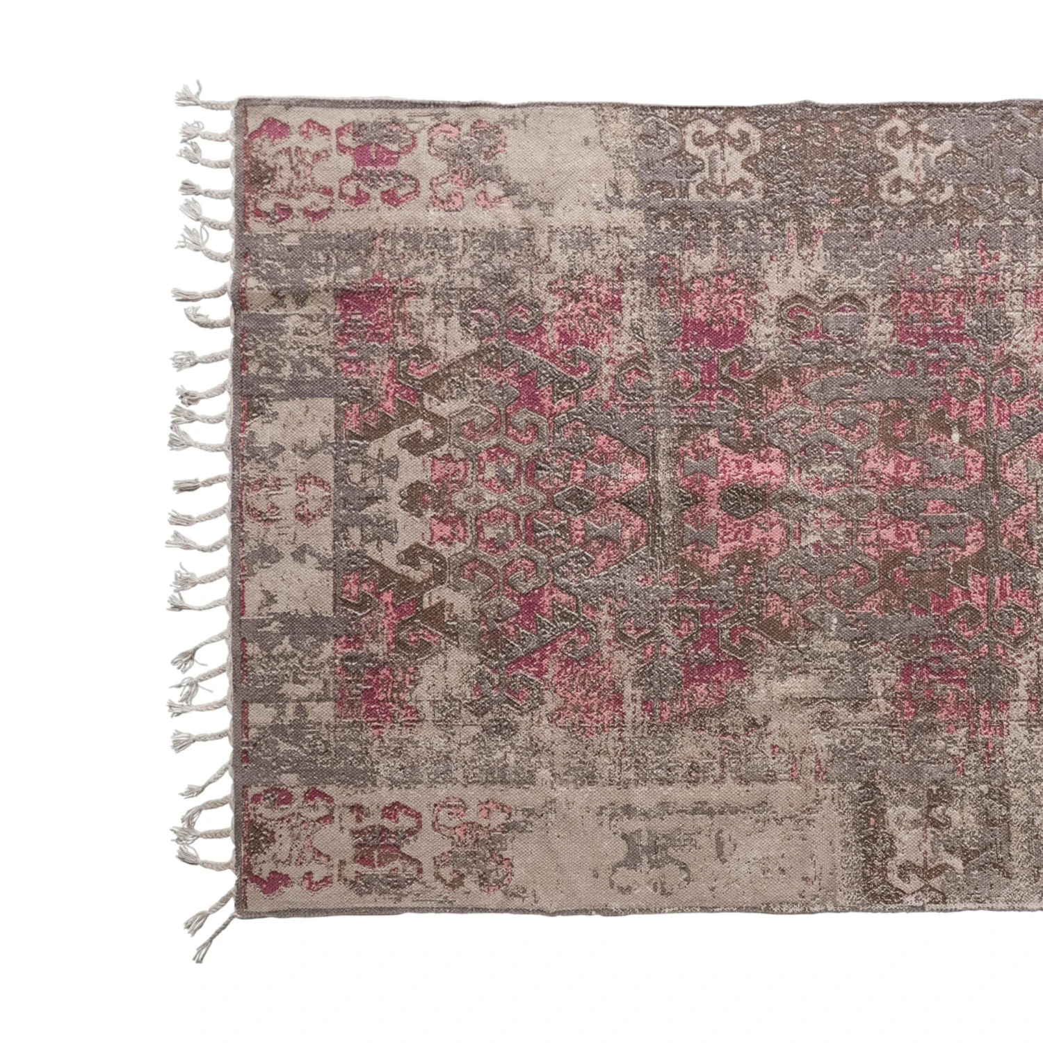 Woven Cotton Distressed Print Rug With Braided Fringe, Multi Color (Pick Up Only)