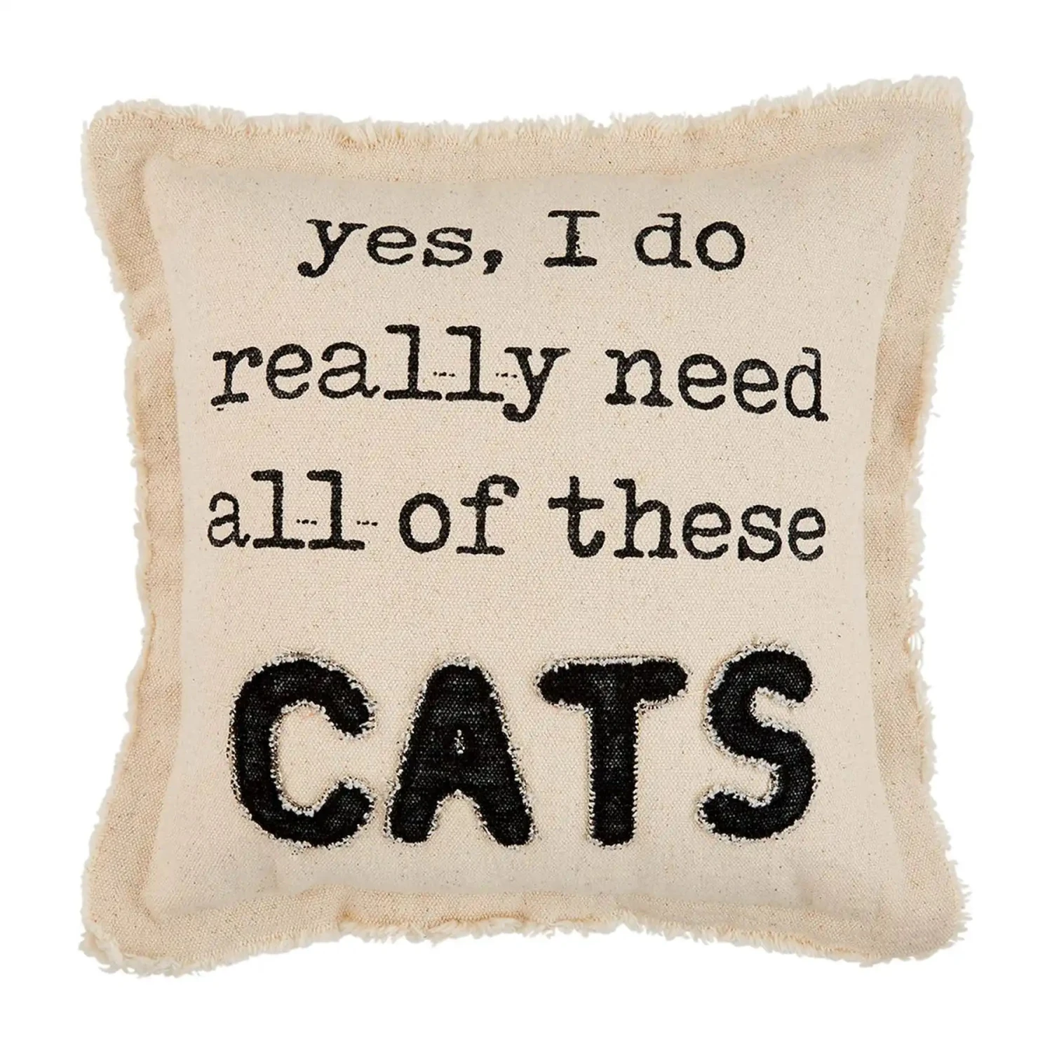 “Yes, I Really Need All Of These Cats” Pillow By Mud Pie